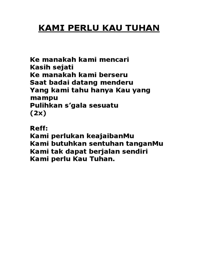 Demikian Lirik Lagu Rohani Kristen Kami Perlu Kau Tuhan. Kumpulan Lirik Lagu Rohani. Kami Perlu Kau Tuhan.